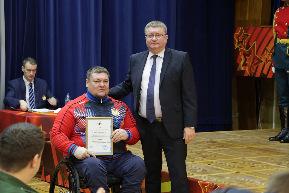Андрей Строкин выступил с приветственным словом и вручил ведомственные награды Паралимпийского комитета России. Награды «За большой вклад в развитие паралимпийского движения в России, вовлечение ветеранов специальной военной операции в занятия физической культурой и адаптивным спортом, а также за обеспечение участия военнослужащих во Всемирных военных играх» были вручены руководству, тренерам и специалистам Федерального автономного учреждения Министерства обороны Российской Федерации «Центральный спортивный клуб Армии».