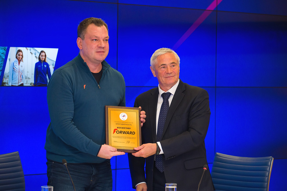 Павел Рожков в ходе своего выступления поблагодарил коллектив компании Форвард за долголетнее и плодотворное сотрудничество, и вручил Виталию Цыганкову Благодарность Паралимпийского комитета России.