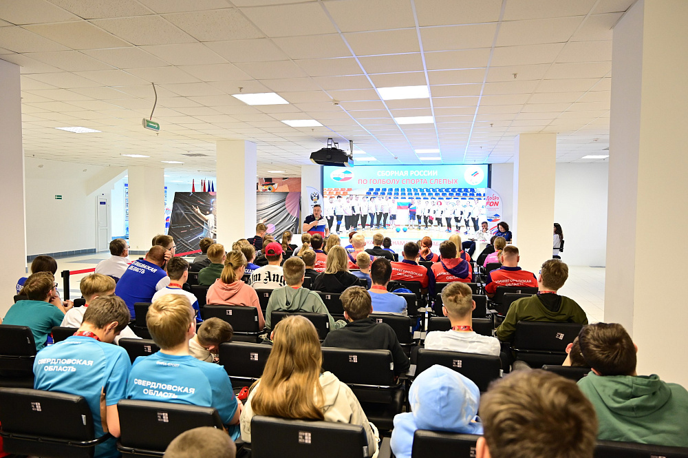 О командных паралимпийских дисциплинах – голболе и мини-футболе 5×5 (В1) – школьникам рассказали мастер спорта международного класса, заслуженный тренер России, старший тренер сборной России по голболу Илькам Набиев и чемпион Европы, серебряный призер по мини-футболу 5×5 спорта слепых, участник альтернативных игр в Рио-де-Жанейро-2016 Кирилл Печенин.