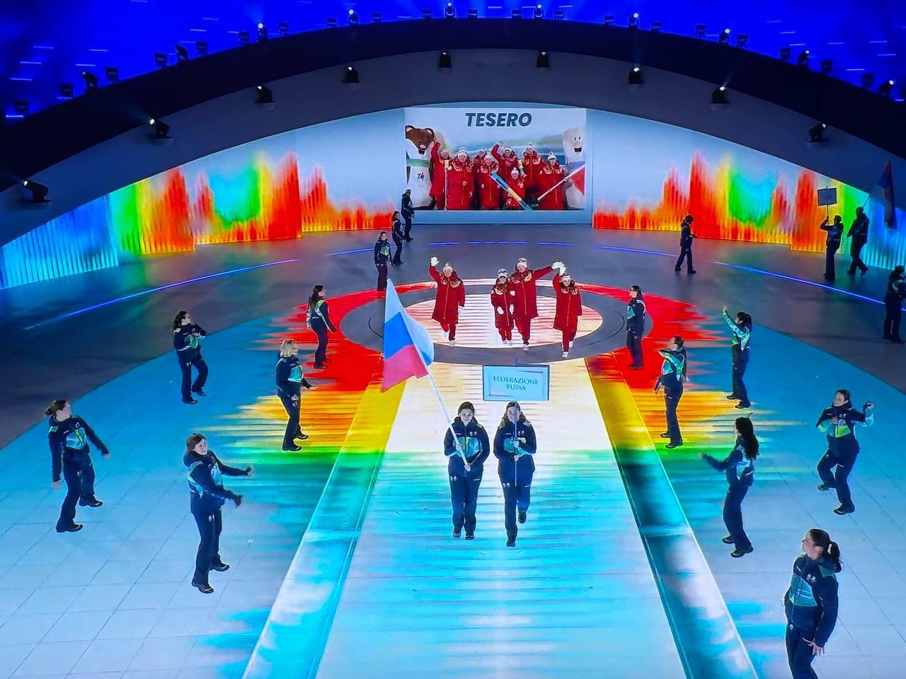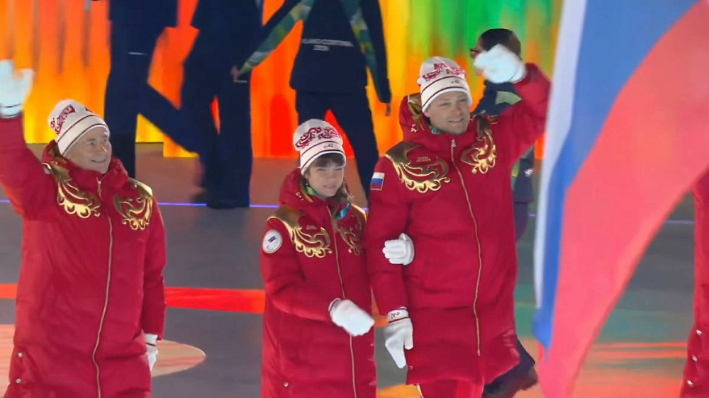 В составе российской делегации на парад флагов вышли лыжница Анастасия Багиян и ее ведущий Сергей Синякин, президент Паралимпийского комитета России Павел Рожков и паралимпийский атташе команды Екатерина Пронина.