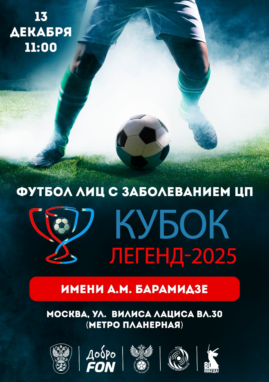 13 декабря в Москве в манеже «РФЛ-Арена» пройдет шестой ежегодный турнир – «Кубок легенд-2025» имени Автандила Михайловича Барамидзе по футболу лиц с заболеванием церебральным параличом.