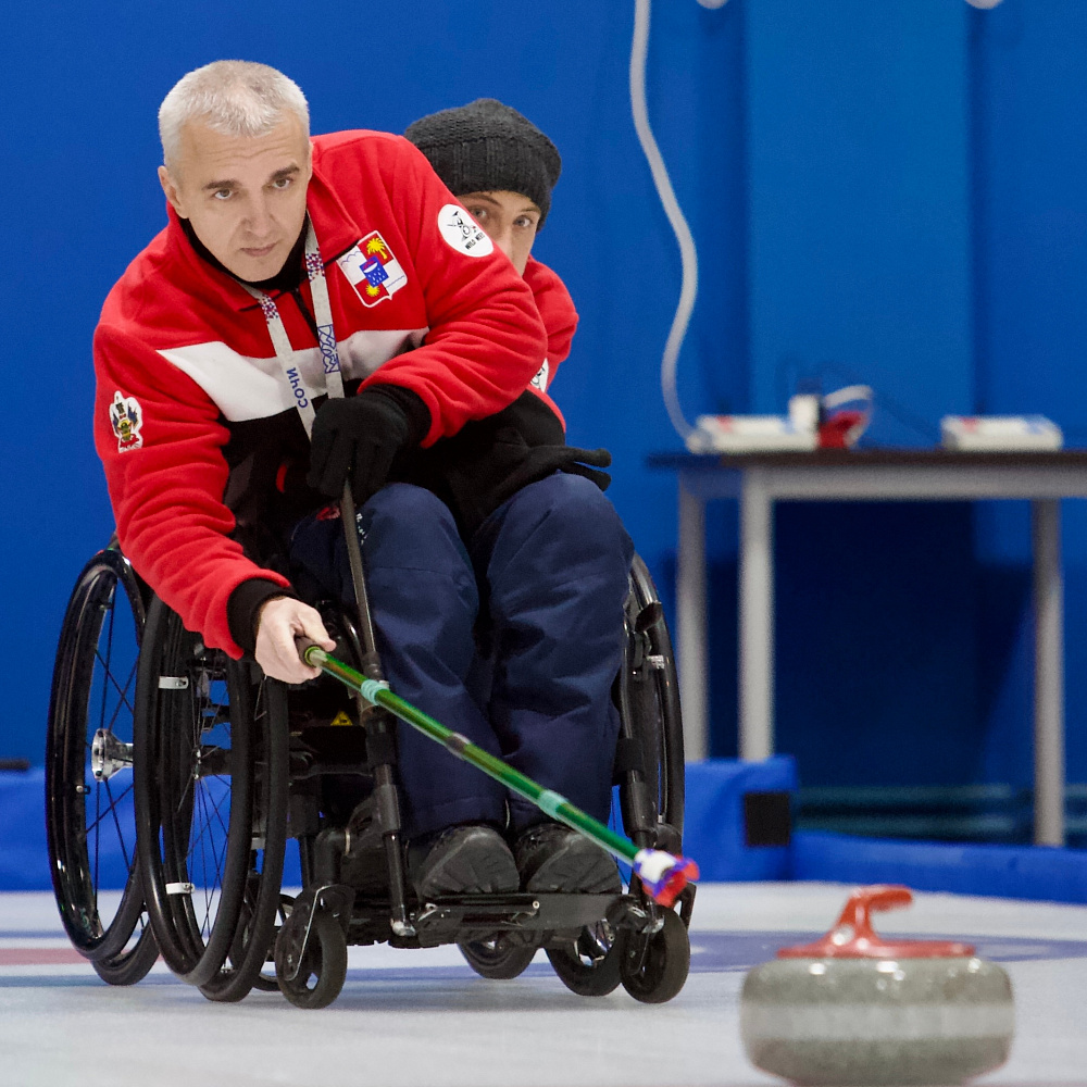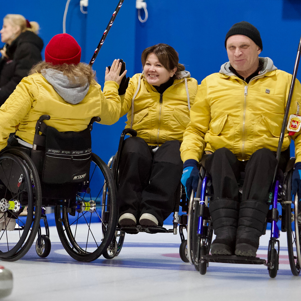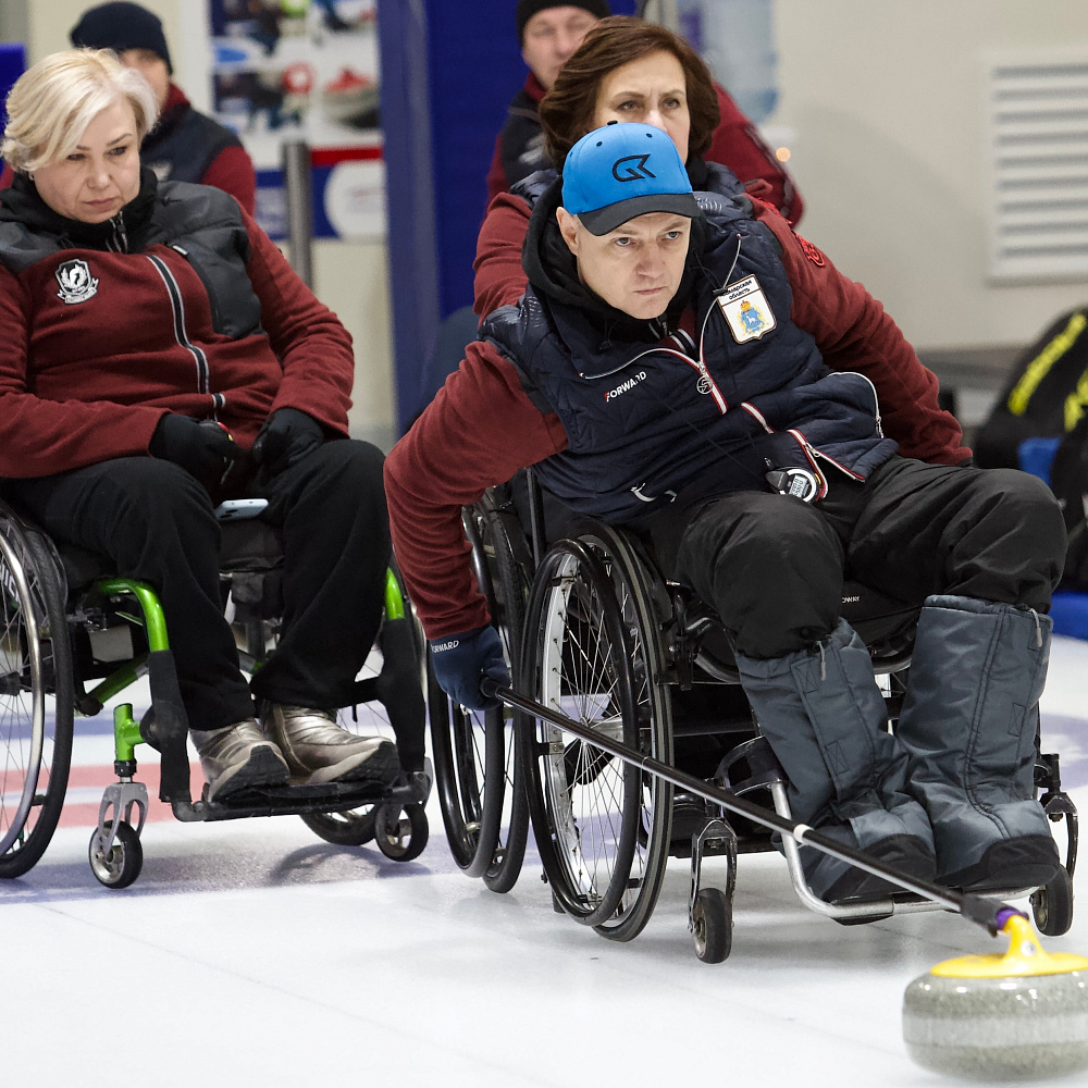 Керлинг на колясках — это адаптация керлинга для спортсменов с ограниченными возможностями. В марте 2002 года кёрлинг на колясках получил паралимпийский статус, а организационный комитет Паралимпийских игр 2006 года в Турине (Италия) включил его в программу соревнований. Каждая команда состоит из 4 игроков – скип, вице-скип, секонд (второй) и лид (первый). В состав команды должна входить хотя бы одна спортсменка. В 2022 году впервые был проведен чемпионат мира среди смешанных пар. Игроки противоположных команд поочередно совершают свои броски. Цель игры - поставить свой камень ближе к центру дома чем соперник, и не дать сопернику сделать тоже самое. Игра состоит из 8 эндов (периодов) победа в каждом из которых присуждается одной команде. В энде побеждает команда, у которой после выпуска всех снарядов камень окажется ближе к центру «дома». Количество очков присуждается от количества камней, которые оказались ближе к центру от камня соперника. Сумма результатов всех эндов дает окончательный результат игры.